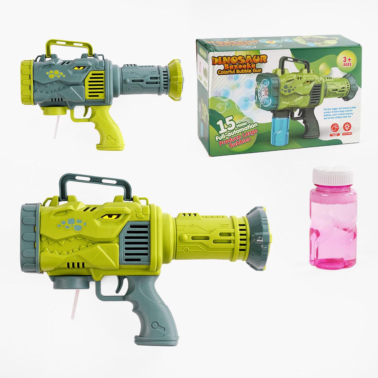 Пістолет з мильними бульбашками 018 "Динозавр" з підсвічуванням + пляшечка з бульбашками, зелений